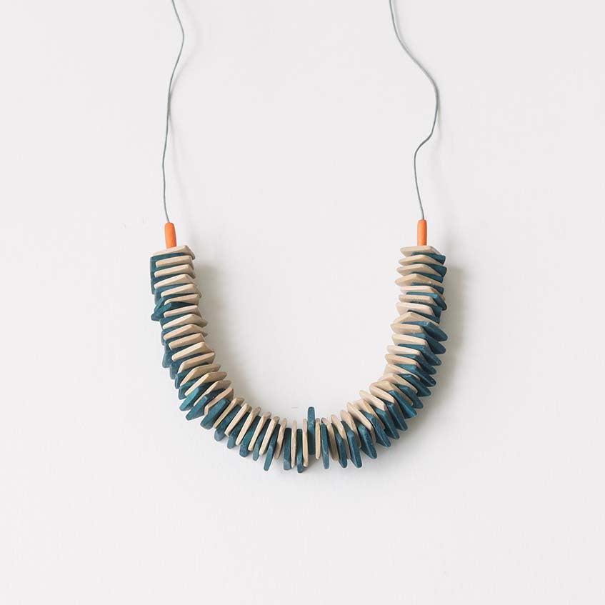 Amber S Adjustable Necklace / Cream & Teal Mix