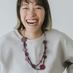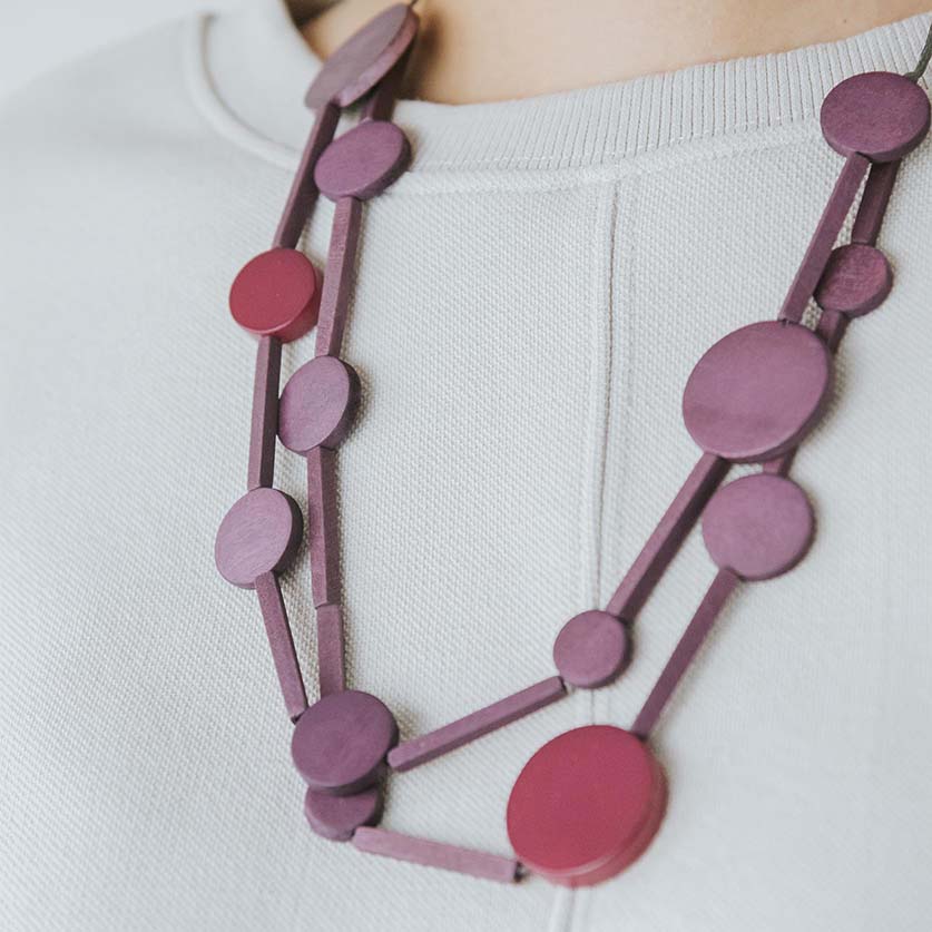 - Made from sustainable White Wood finished with dark grey cotton cord with a simplified closure that allows for easy adjustment of length.