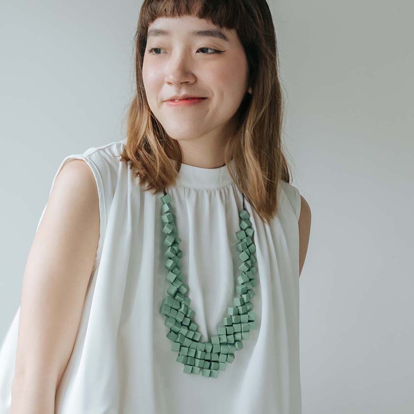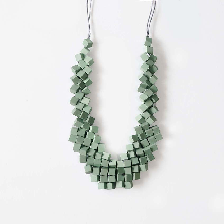 Cube Adjustable Necklace / Mint Green