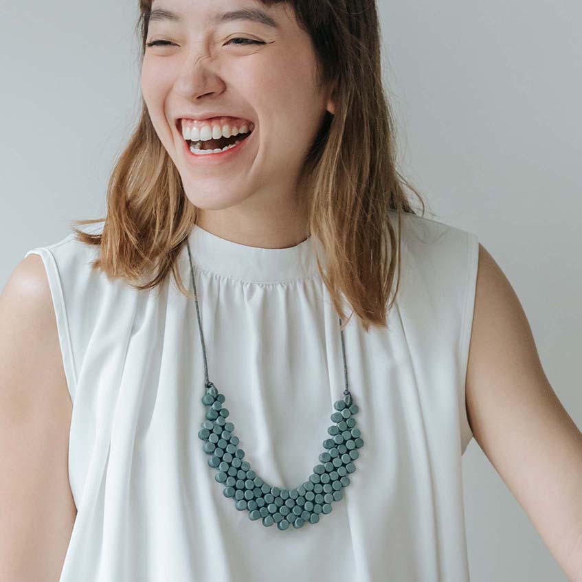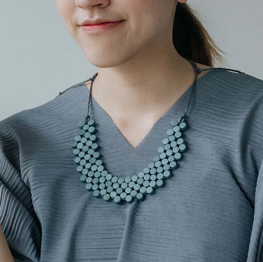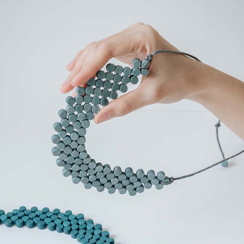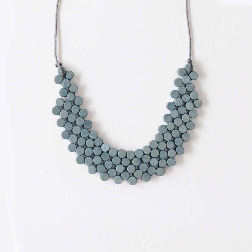 - Made from sustainable White Wood finished with grey cotton cord with a simplified closure that allows for easy adjustment of length.