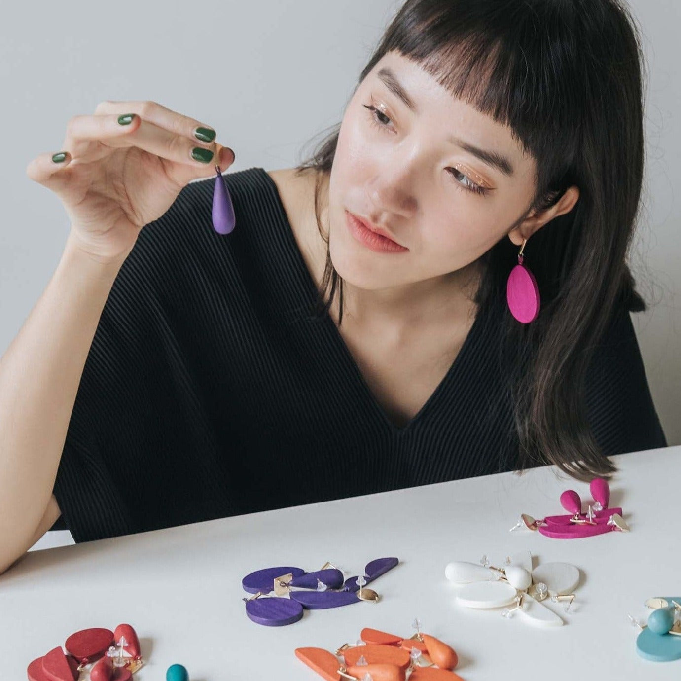 - Made from sustainable White Wood and finished with elastic band, hand-dyed to the same colour as bead component.