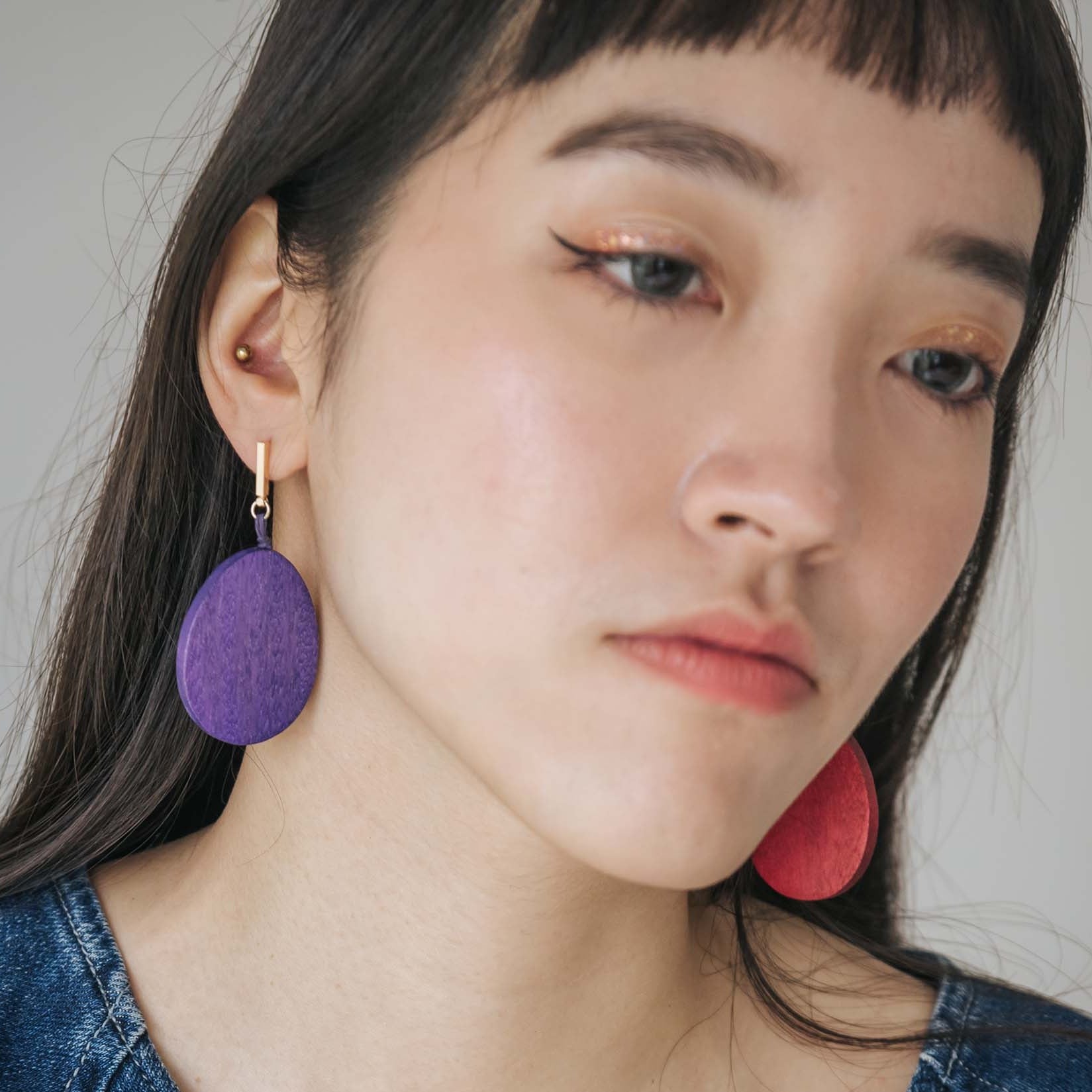 - Ear studs are 18K gold-plated brass.