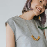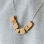 - Made from sustainable White Wood finished with gold plated copper clasp.