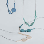 - Made from sustainable White Wood finished with grey cotton cord with a simplified closure that allows for easy adjustment of length.