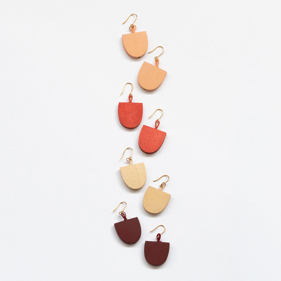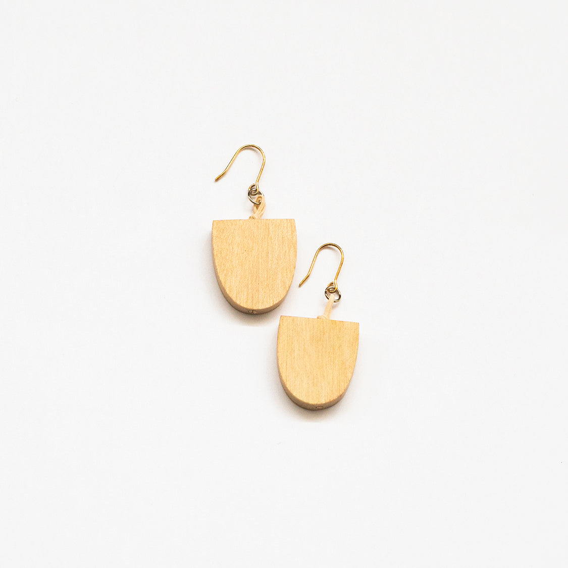 WoonHung Mia Series 4 earrings, made from sustainable white wood, dedicated to the future of our planet. Designed in Singapore and handmade in Cebu, the collection gives back to support school children in the Philippines.