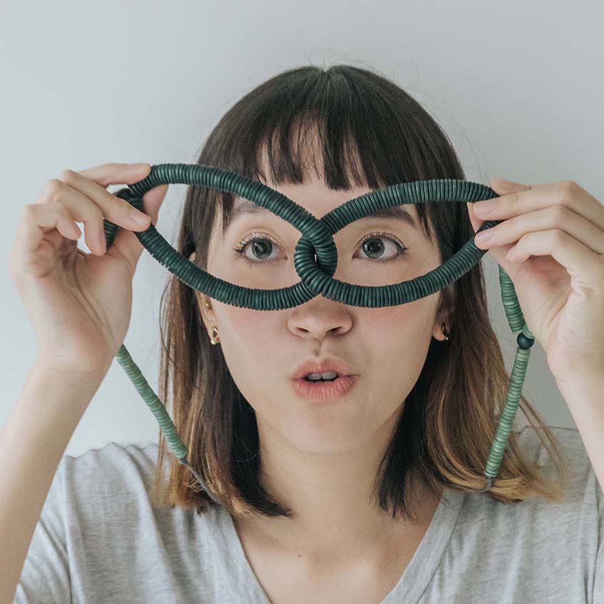 - Made from sustainable White Wood finished with grey cotton cord with a simplified closure that allows for easy adjustment of length.