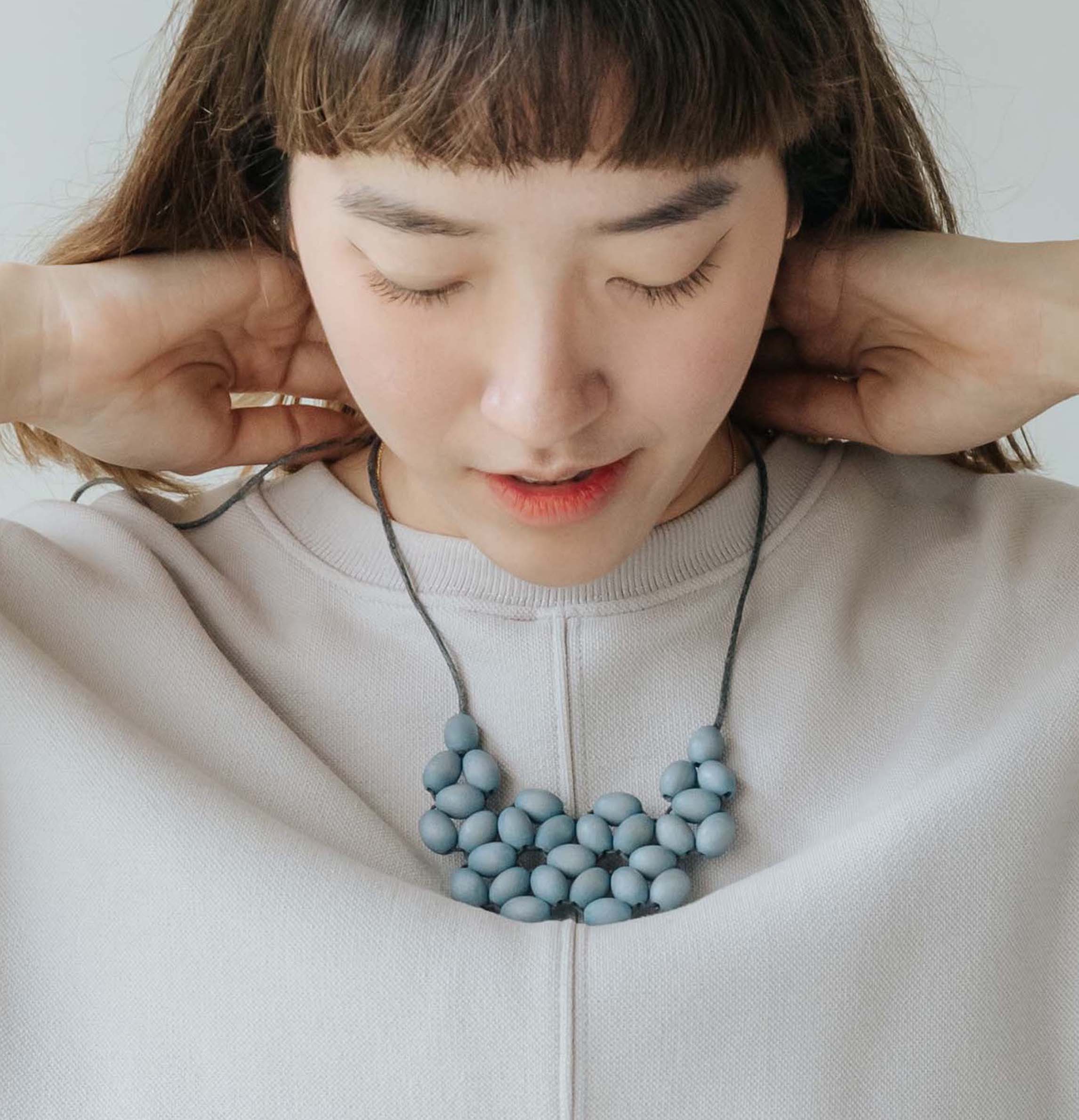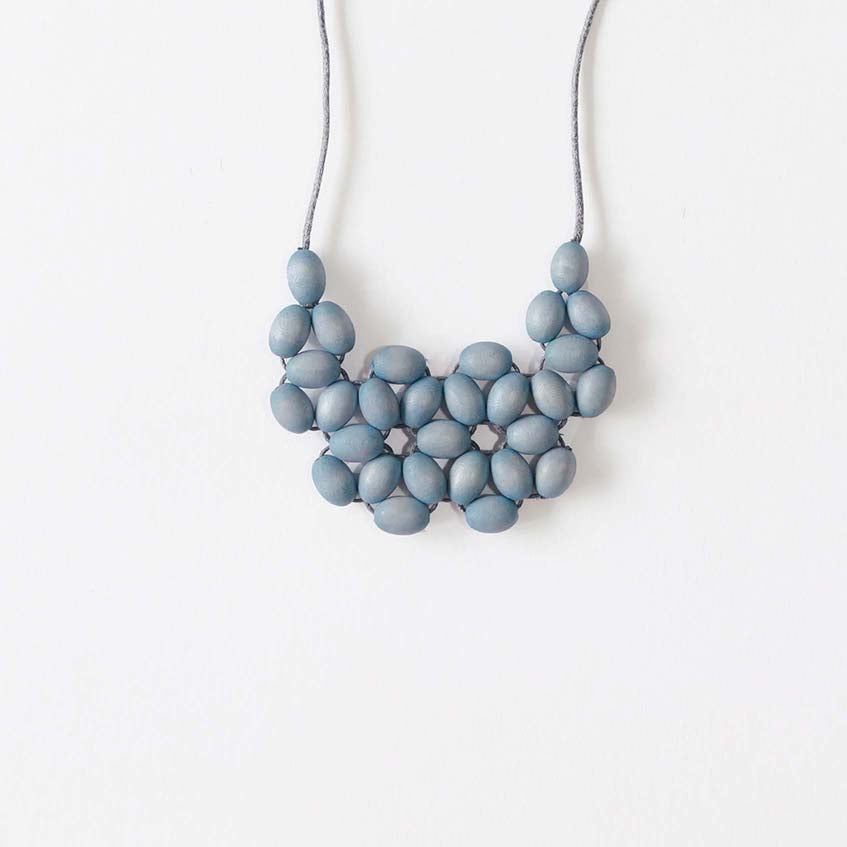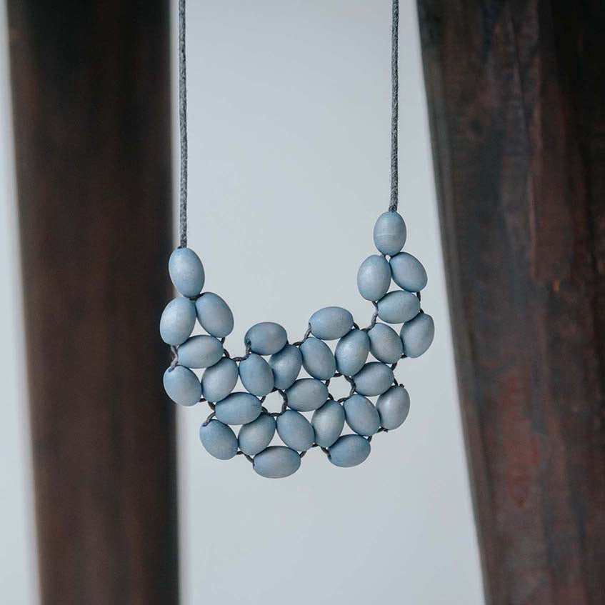 - Made from sustainable White Wood finished with grey cotton cord with a simplified closure that allows for easy adjustment of length.