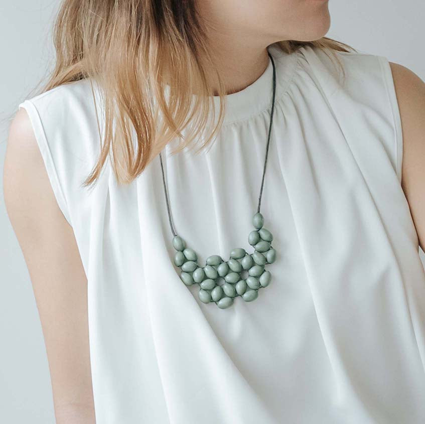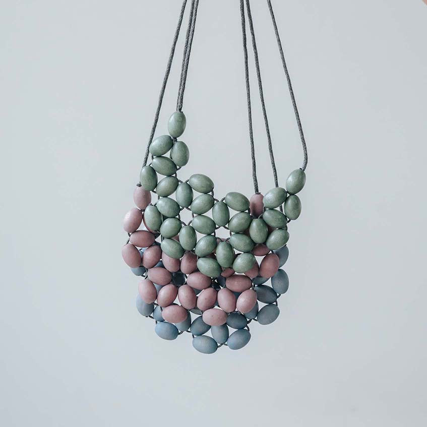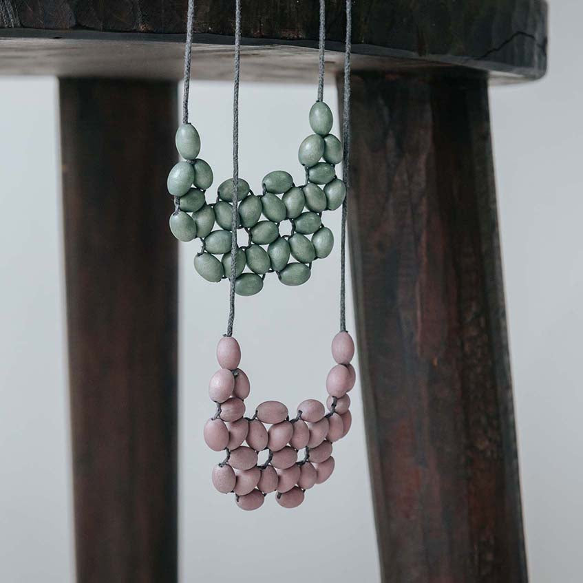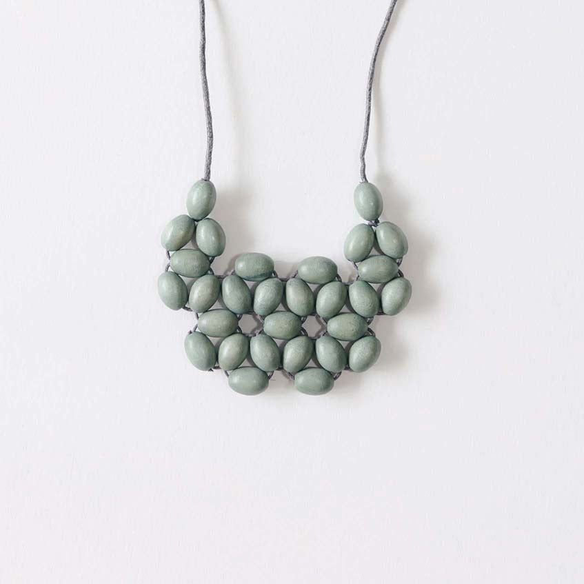 - Made from sustainable White Wood finished with grey cotton cord with a simplified closure that allows for easy adjustment of length.