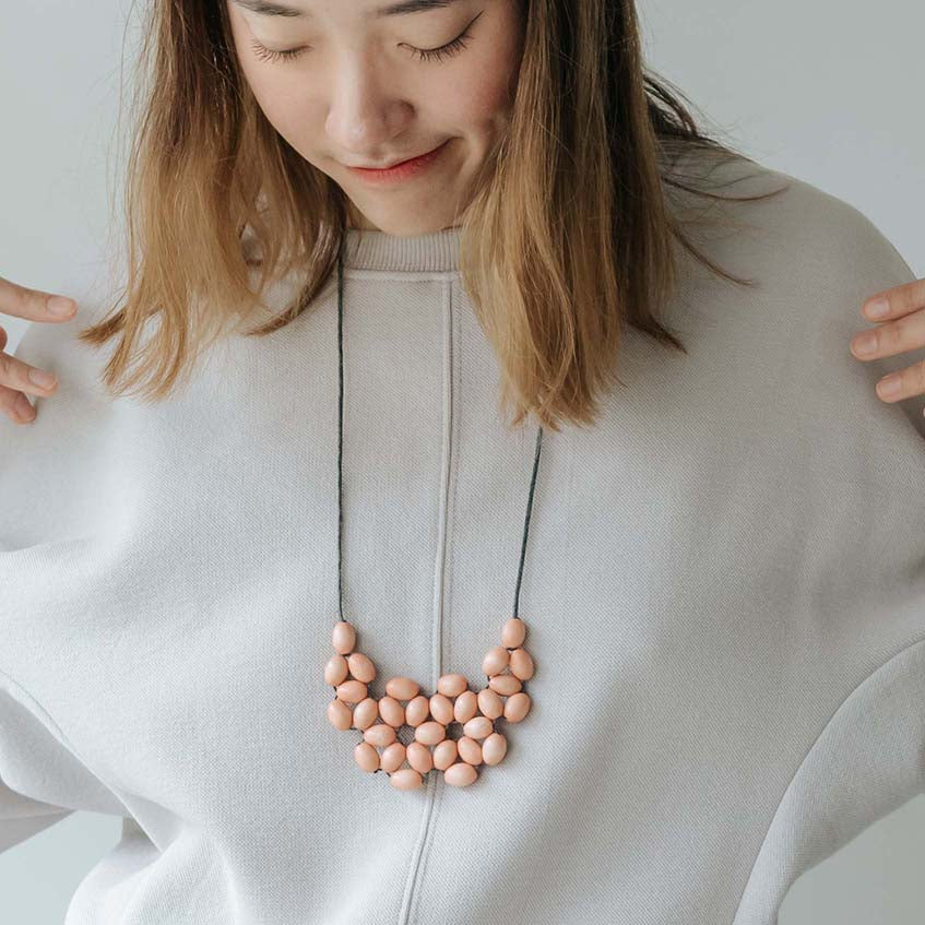 Seed Interlace Adjustable Necklace / Peach