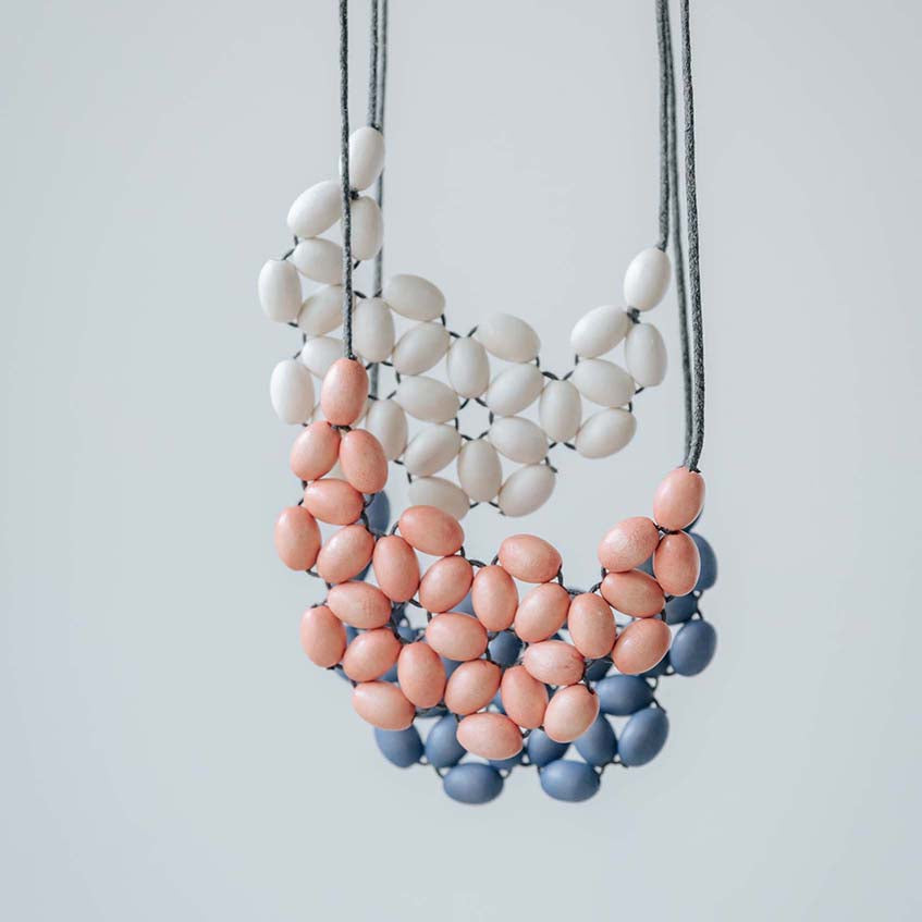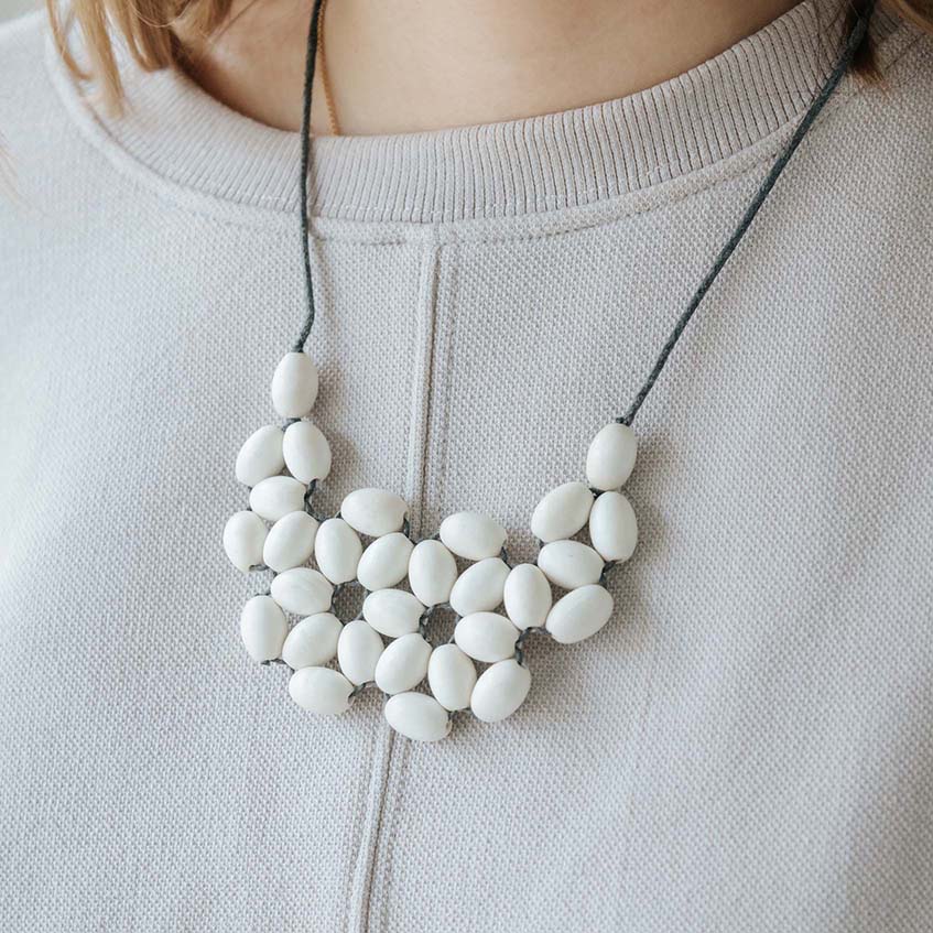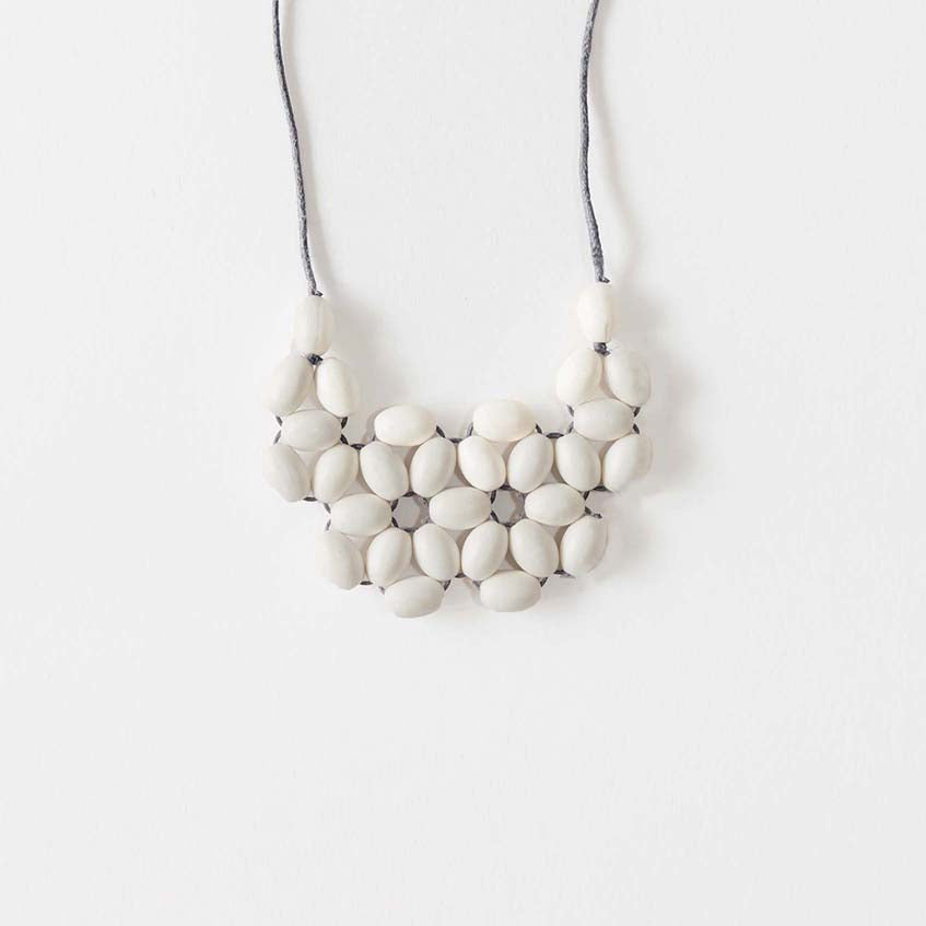 - Made from sustainable White Wood finished with grey cotton cord with a simplified closure that allows for easy adjustment of length.