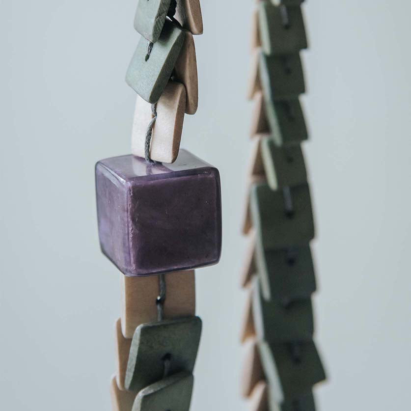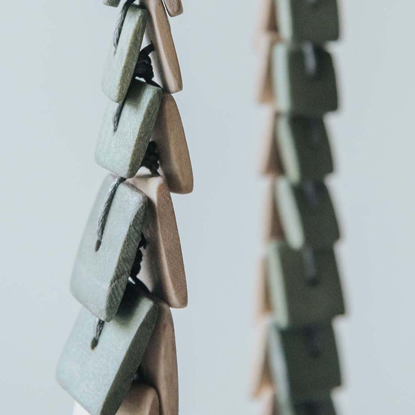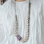 - Made from sustainable White Wood finished with grey cotton cord with a simplified closure that allows for easy adjustment of length.