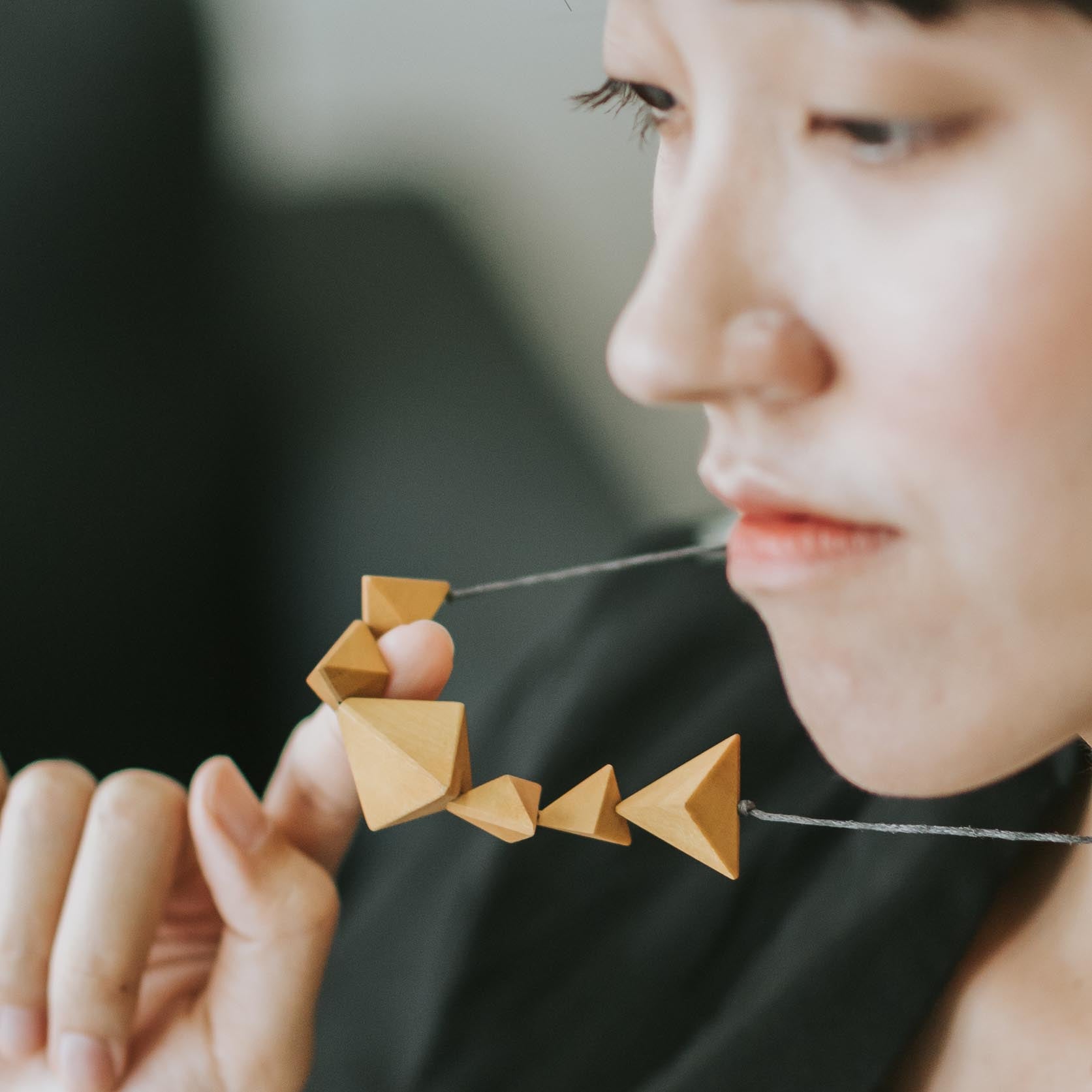 - Made from sustainable White Wood finished with dark grey cotton cord with a simplified closure that allows for easy adjustment of length.