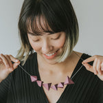 - Made from sustainable White Wood finished with dark grey cotton cord with a simplified closure that allows for easy adjustment of length.