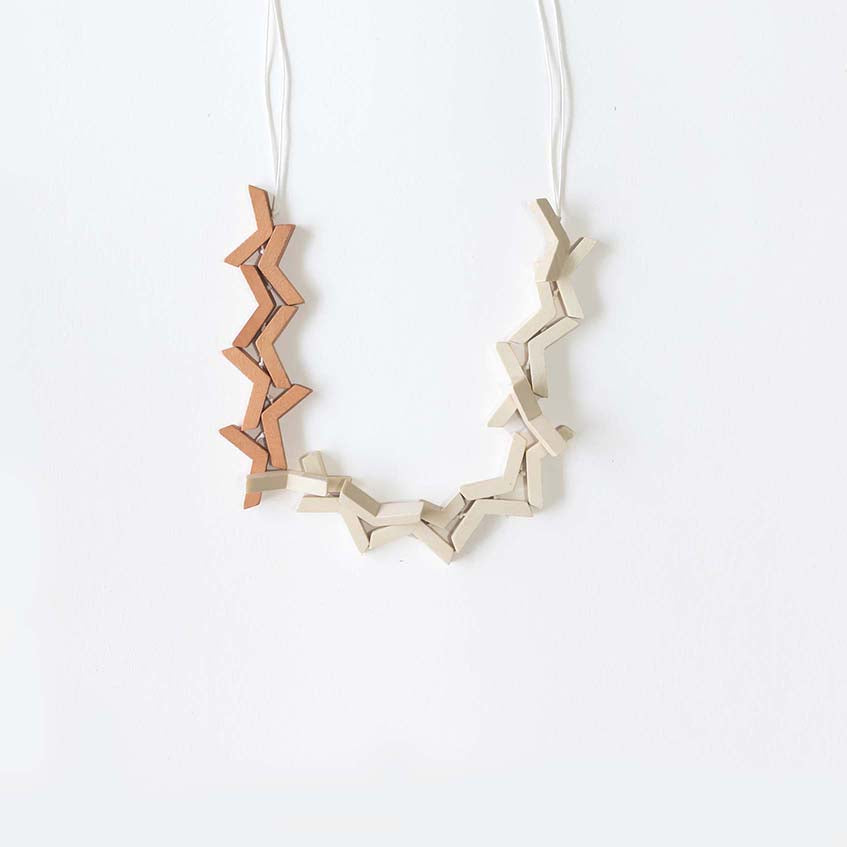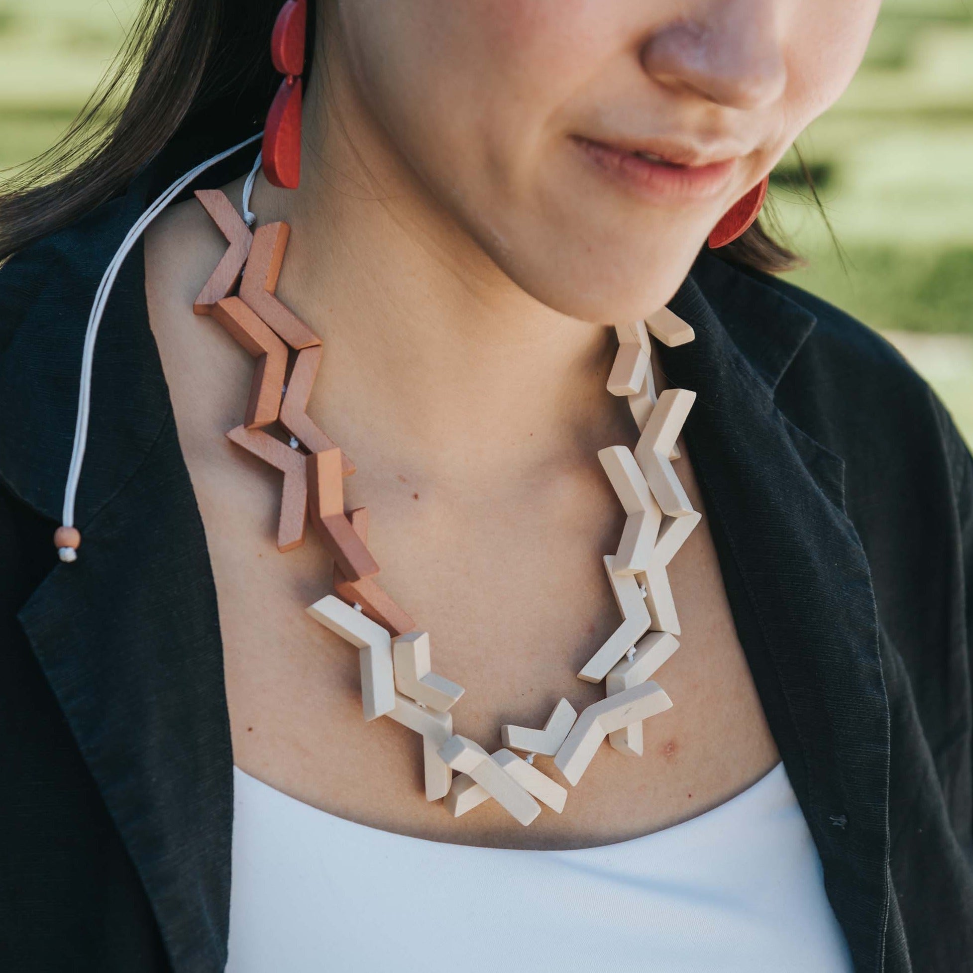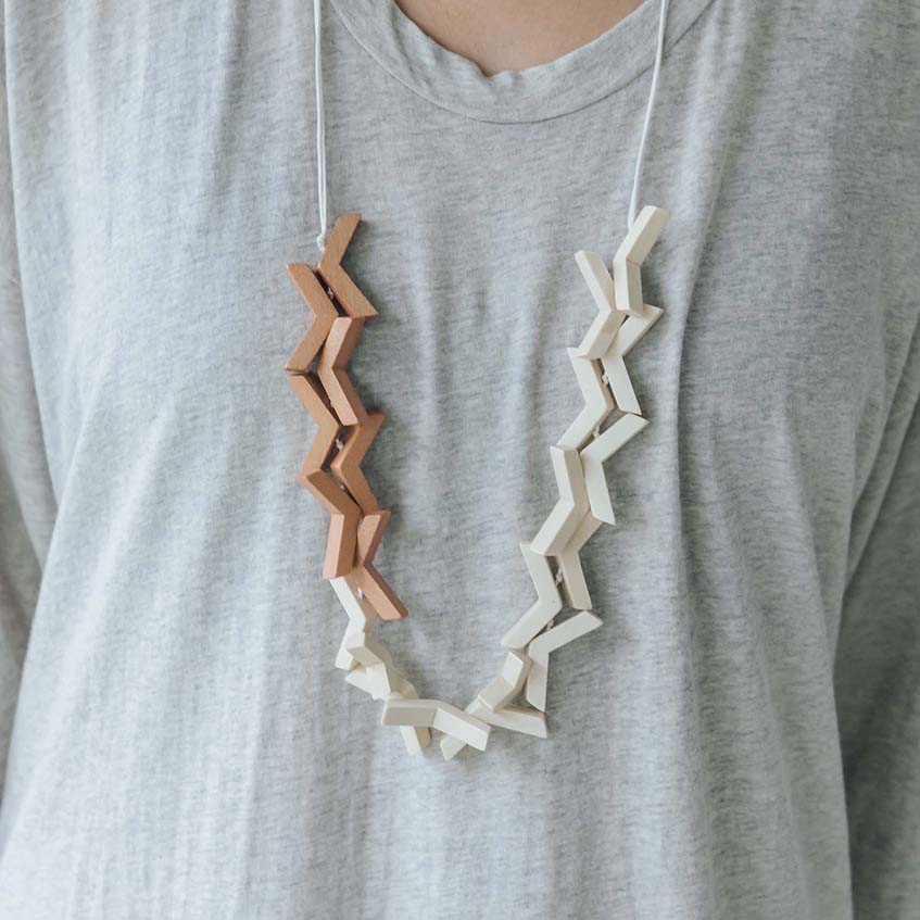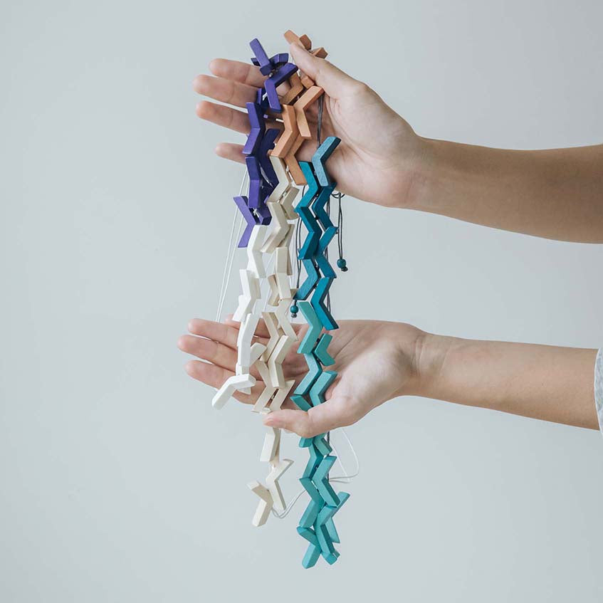 - Made from sustainable White Wood finished with white cotton cord with a simplified closure that allows for easy adjustment of length.