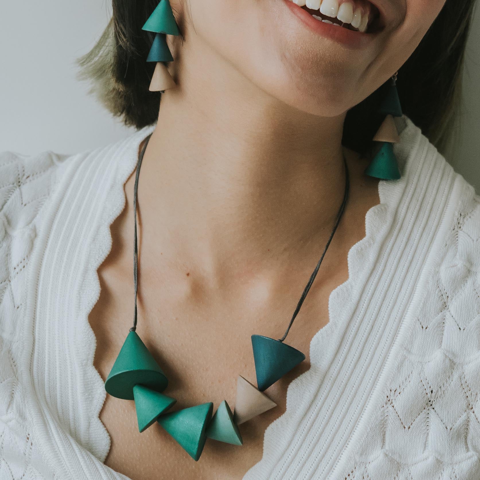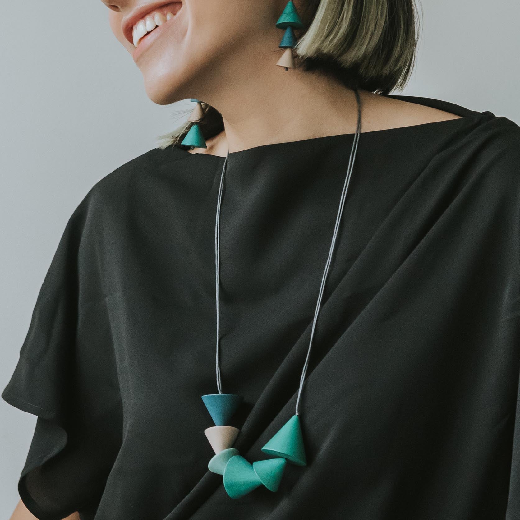 - Made from sustainable White Wood finished with dark grey cotton cord with a simplified closure that allows for easy adjustment of length.
